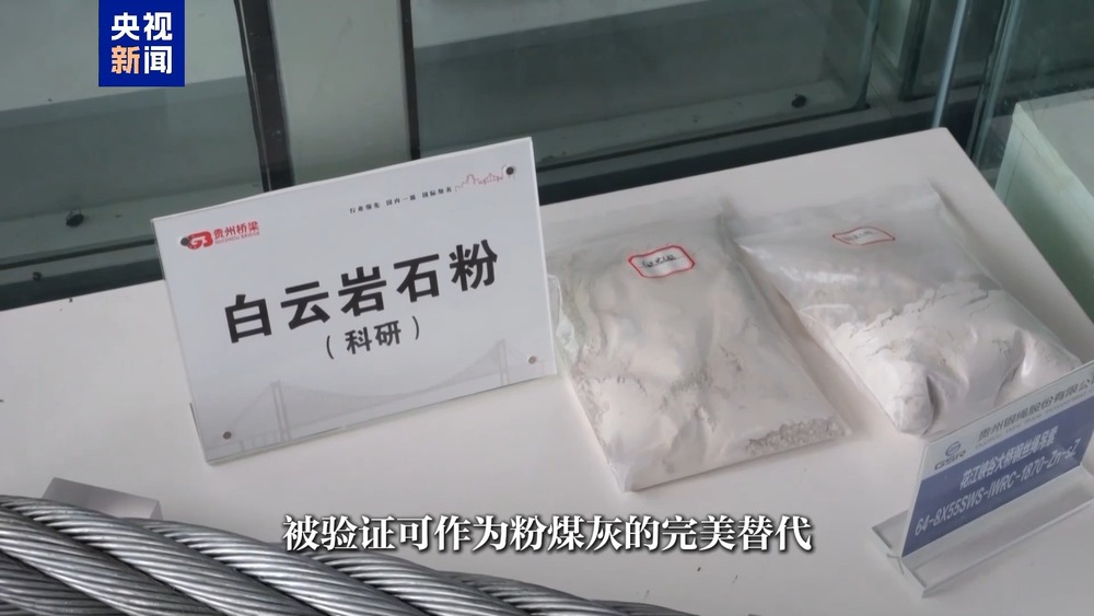 花江峡谷大桥单个锚碇的混凝土浇筑量就达16万立方米。但在施工过程中,受到材料短缺、运输难度大等多重因素的制约,浇筑所必须用到的粉煤灰严重紧缺,施工进度一度停滞。面临着工期的压力,工程团队在堆积如山的工程废料中发现了转机,路基挖出的白云岩碎石,经过超细研磨后的石粉,被验证可作为粉煤灰的完美替代,在特定配比下甚至能达到更好的浇筑效果。