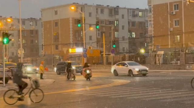 北京市气象台14日17时发布预报,傍晚至夜间多云转晴,西部、北部有零星小雪或雨夹雪,南转北风一二级,最低气温降至-4℃。明天白天晴转多云,北转东风二三间四级,最高气温为9℃。夜间大气扩散条件较差,能见度不佳,驾车出行需注意交通安全。 1月14日傍晚,昌平区和延庆区迎来降雪。随着天色渐暗,细小的雪粒逐渐变成鹅毛状雪花缓缓飘落。行人纷纷停下脚步,拿出手机记录这初冬的第一场雪。街道旁的路灯亮起,暖黄色的灯光与雪花交织,营造出静谧而柔美的氛围。这场雪不仅给市民带来了惊喜,也增添了城市的诗意与浪漫。