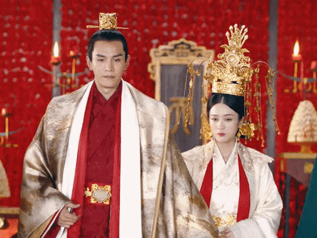 《九州·海上牧云记》里蒋勤勤的皇后发冠则属于宽度和高度“全面发展”的选手,尤其是宽度,看起来甚至超过了演员的肩宽,戴上这样的发冠,想不端庄都不行,毕竟哪怕只是转个头,发饰都可能撞到旁边的人。