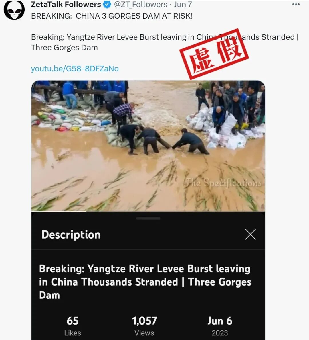 近日,推特上流传几张关于三峡大坝的图,附文称“三峡大坝着火”或“三峡大坝决堤”。 网传图片看似为一座桥附近浓烟滚滚,还有图片则疑似某座堤坝被冲破,但这些图片的地理位置特征似乎与三峡大坝并不吻合。 此外,还有用户发布图片称“三峡大坝决堤导致数千人滞留”。事实真的如此吗? 在谷歌、Yandex、百度等多个浏览器对网传图片进行反搜,结果显示, 据称是“三峡大坝决堤导致数千人滞留”的网传图片最早出现于2021年, 由《运城日报》供图。根据报道,2021年10月,汾河下游遭遇洪峰,山西37条河流暴发洪水, 网传图片拍摄的是稷山县稷峰镇西薛村干部群众和救援队合力抗洪的场景。 另一方面, “三峡大坝起火”和“三峡大坝决堤”的网传图片则没有完全匹配的反搜结果, 仔细观察网传图片,两张所谓的“起火”图片只是布局相似,在地标细节上并不完全一致,令人生疑。如,两张图片中的塔台状建筑和桥梁设计完全不同,山上的公路也时有时无;其中一张图的右侧轮船船尾部分出现了没有光源的反光,十分违反常理。而所谓的“三峡大坝决堤”网传图片中十分显眼的两侧峭壁也并不能完全对应到现实中三峡大坝的某处。 网传“三峡大坝起火”图,看似同一场景,实则经不起推敲。 用AI内容检测工具Hive对这几张网传景象图进行评测, 结果显示三张图片为AI生成的概率均超过了99%。 作为对比,在Hive检测上述2021年拍摄的抗洪图片,结果显示其为AI制图概率为0%。在推特能追溯到网传图片最早发布于6月6日。湖北省水文水资源中心和水利部长江水利委员会近期对三峡大坝所在地宜昌的水位监测显示, 近几天宜昌水文站的水位线都在44.5米左右,没有超过水位警戒线53米。 湖北省水文水资源中心6月5日—6月7日对宜昌水文站的水位监测记录 而为了更直接了解三峡大坝近期实况,澎湃明查就此事求证当地的专业人士, 确定了三峡大坝并没有出现火情或决堤, 且从6月11日拍摄的最新实景图来看,水位线也处正常范围内。 综上所述,网传所谓三峡大坝“着火”和“决堤”图片有多处细节违反常理且与三峡大坝实景不符,AI图片检测工具显示,网传图片有超过99%的概率为AI制图。网传“三峡大坝决堤导致千人滞留”的图片实际拍摄于2021年,是山西省稷山县稷峰镇西薛村干部群众和救援队合力抗洪的场景。澎湃明查求证了宜昌当地专业人士,确定外网传言不实,从6月11日三峡大坝的最新实拍图来看,近期也没有出现决堤的情况。 预览时标签不可点 ? 暂无留言 已无更多数据