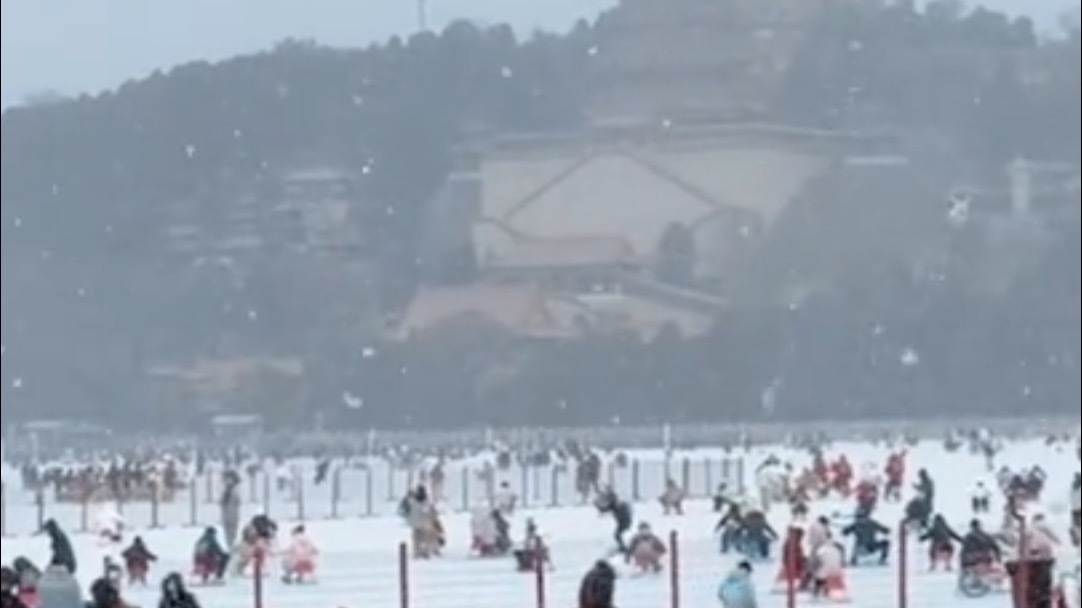 @军情风云 184播放 颐和园昆明湖冰场迎客 游客雪中“水墨画”上滑冰嬉戏