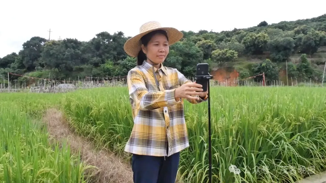 陈丽容准备拍摄 “网上有着丰富的学习资源,我打开手机就可以随时学习,不受时间和空间的限制。”在陈丽容看来,国家信息技术的发展为自主学习赋能。下班后,她习惯性地抽出时间去学习英语。她利用网络资源,下载各种英语学习软件,大量观看英语教学视频、英语电影,还加入英语学习社群与其他学习者交流。从单词到语法,从听力到口语,坚持的力量让陈丽容在自学英语的道路上越走越从容。 四年自学英语的经历,给陈丽容带来了心态上的变化。她不过分关注结果,而是注重体验学习的过程,逐渐养成了“终身学习”的生活方式。她开始尝试将学习英语的热情,应用到短视频领域。她坚信,只要保持对学习的热爱和追求,她就能够打开更多的门,去看到更大的世界。 2023年,陈丽容从深圳回到家乡投身农业。一望无际的果木林,成片的稻田和蔬菜地,充满盎然生机,置身其中令人心旷神怡……这一景象,激发了她新的创作灵感:“何不尝试用英语介绍家乡的“土特产”和风景,作为每天打卡练习英语口语的实践。” 说干就干,在最新的视频中,陈丽容以农作物为背景用英语介绍茂名荔枝。流利的口语表达,结合诙谐的中西对话和独特的本地口音,有网友调侃她说出了一口“粤式英语”。陈丽容的视频不仅得到网友的关注与喜爱,还将充满魅力的茂名带到更多人眼前。连日来,陈丽容视频里关于茂名“土特产”的内容倍受欢迎,广大网友纷纷以不同的方式支持茂名“土特产”。