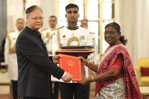 穆斯林与印度教徒对峙,尽管警察在维持秩序,但双方依旧剑拔弩张,甚至互相扔掷石块 文章称,对莫迪而言,若要达成这些更大的变革,势必要求修改宪法,这就要求印人党控制上下两院议席的2/3多数,包括控制联邦院(上院)。如果该党在2025年以及之后的邦选举中持续保持大获全胜且席卷一切的态势,那么其最终必然会获得能够删除宪法中世俗条款和相关表述的权力。 文章认为,此次莫迪如果胜利当选后,未来五年,印人党势必将推行“人类历史上规模最大的系统性社会歧视进程”,穆斯林将愈加被边缘化。倘若该党获得巨大成功,印度政体也可能会经历“不可逆转的重新构建”。 对华关系“有望缓和” 当地时间5月31日,中国新任驻印度大使徐飞洪向印度总统德劳帕迪·穆尔穆递交国书,并进行礼节性拜会。港媒《南华早报》指出,自前任大使孙卫东离任以来,该职位已经空缺18个月,这是自1976年中印恢复互派大使以来最长的一次空缺。 报道称,2020年中印边境局势紧张,两国关系恶化。随着莫迪预计第三次连任并很快恢复对华外交活动,中印之间的关系有望得到缓和。