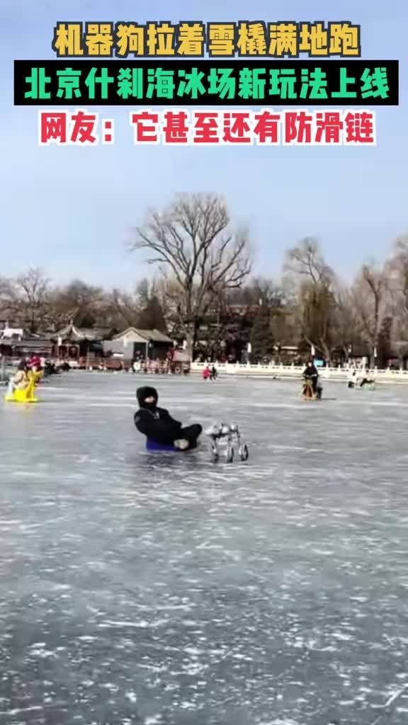 @有料速递 355播放 机器狗拉着雪橇满地跑!北京什刹海冰场新玩法上线!网友:它甚至还有防滑链