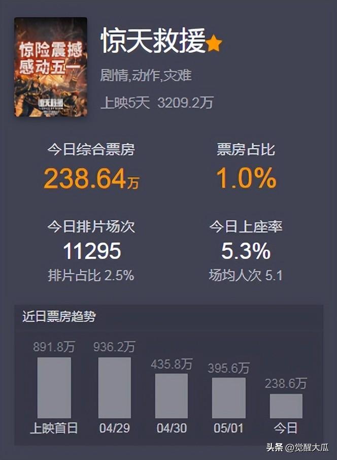 关注 / 五一档电影票房:集体扑街,顶流也不例外,惊天救援或亏损九个亿今年的五一假期即将进入尾声,那么五一档上映的电影都取得了什么样的成绩呢?