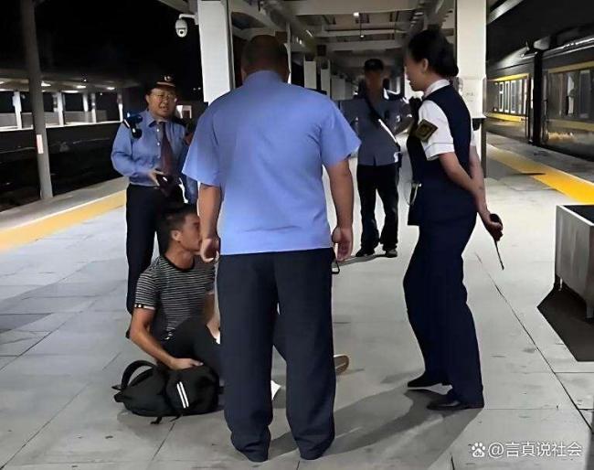 视频中,9月24日在湖南永州一火车站站台上,一位年轻男子与女乘务员发生争执。男子情绪激动,坚持要去医院检查,并威胁说不检查就躺在地上。女乘务员试图查看他是否受伤,但男子仍坚持要乘务员带他去医院。随后,列车工作人员赶来协调,但男子依旧躺在地上,大声质问女乘务员:“打了我你跑得掉吗?”