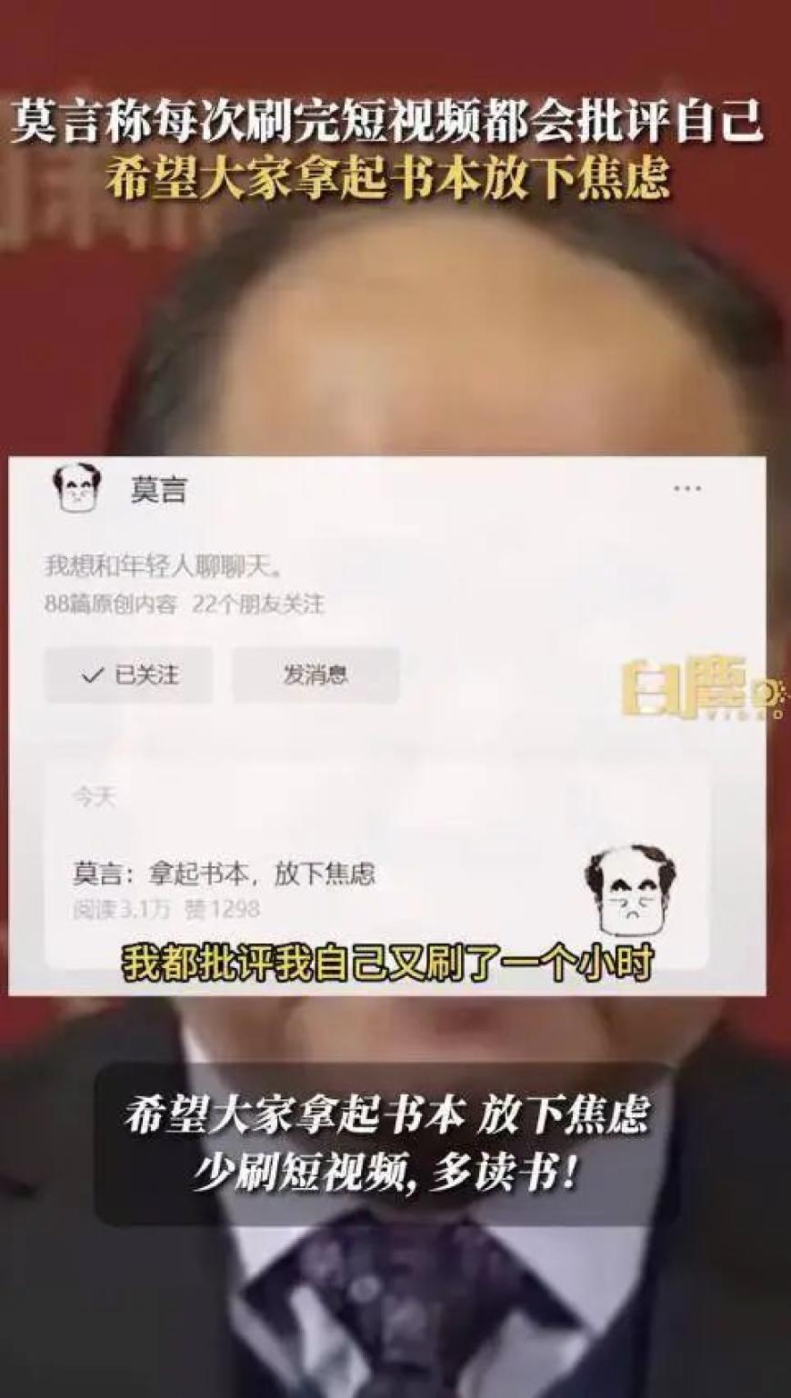 冲上热搜!莫言称每次刷完短视频都会批评自己 |