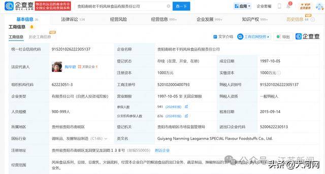 此外,企查查显示,陶华碧名下关联4家企业,其中3家处于存续状态,分别是 贵阳南明春梅酿造有限公司 、贵阳南明老干妈风味食品销售有限公司、贵阳南明老干妈风味食品有限责任公司。