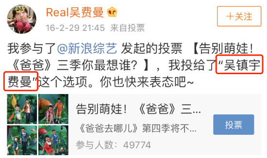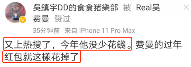 有位看热闹的粉丝@吴镇宇打小报告,你儿子乱花钱! 费曼看完留言,镇定地回复,你艾特了个什么? |