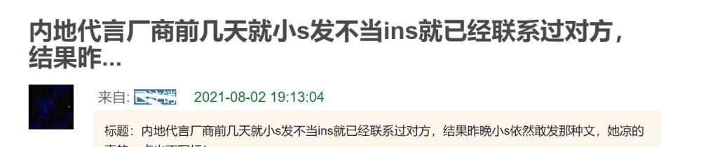 其实无论谁替小S说话,都不如她自己亲自来进行回应。事情发酵已经两天多,最佳的回应时间都错失,小S越晚回应事情就越复杂,这件事跟大S之前闹离婚不一样,只要大S不回应也没什么,毕竟是两人的婚姻问题。但小S这件事是立场问题,网友绝不容许态度含糊不清。 |