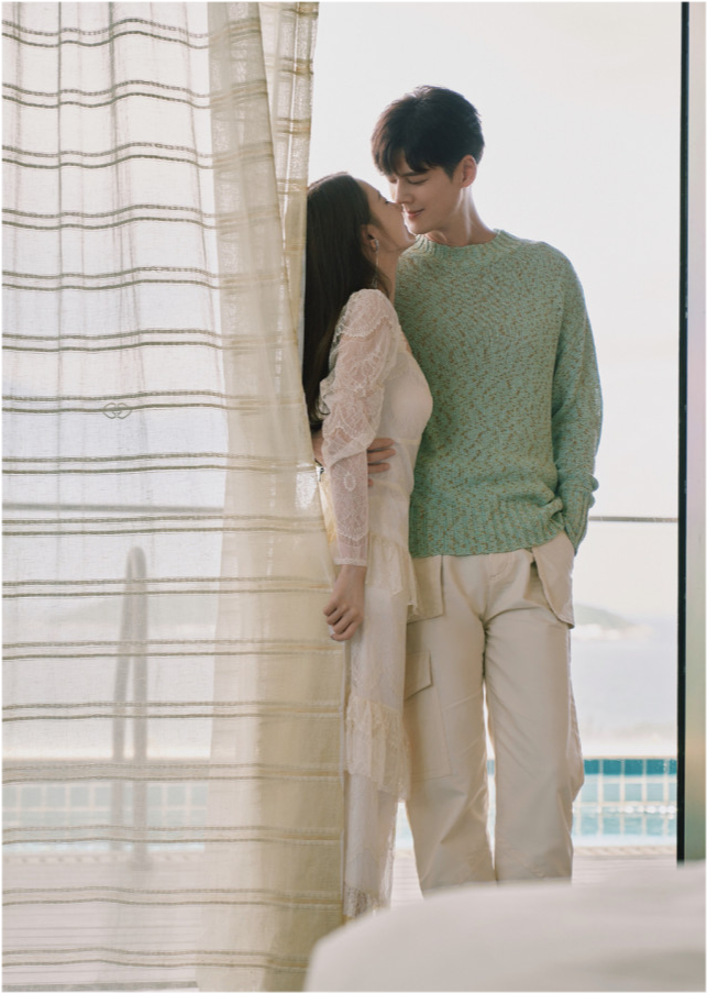 值得一提的是,在这组造型中,还有两人特意在海边拍摄的婚纱礼服照,镜头中的马泽涵身穿华美纱裙,看上去娇俏可人,郭品超则身穿白色西服套装,挺拔高挑的身材可谓十足抢镜,而现场布设的细节更是梦幻唯美,看上去宛若是两人的正式婚纱照,此情此景中,两人深情对视、甜蜜牵手简直是童话里的王子与公主。 |