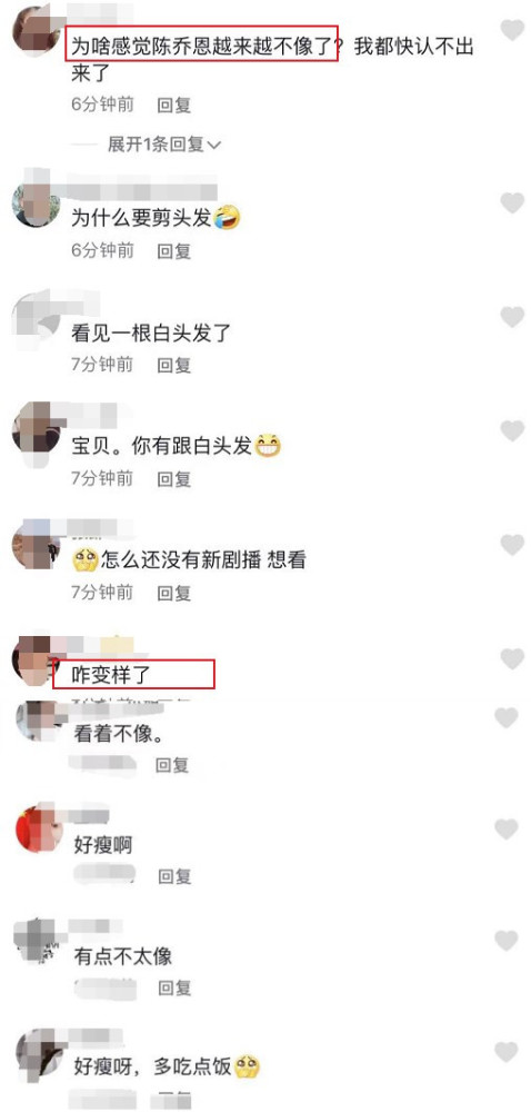 网友纷纷留言:“为啥感觉陈乔恩越来越不像了?我都快认不出来了”、“咋变样了”、“好瘦呀,多吃点饭”、“有点不太像”。 |