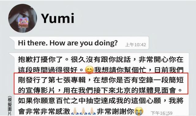 随后不久台媒爆出了一张图片,图片中是孙雨让王力宏帮忙宣传专辑,这张照片就是李靓蕾发的那张实锤截图,只不过李靓蕾只截了一半,两人并没有说其他的话。 |