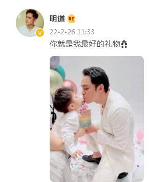 明道拍摄现场黑脸发飙后首次在社交平台公开晒出照片,为了庆祝自己的42岁生日。晒出的适合儿子的亲吻照并配文案,你就是我最好的礼物,明道的这条动态引起了网友的关注和热议。 |