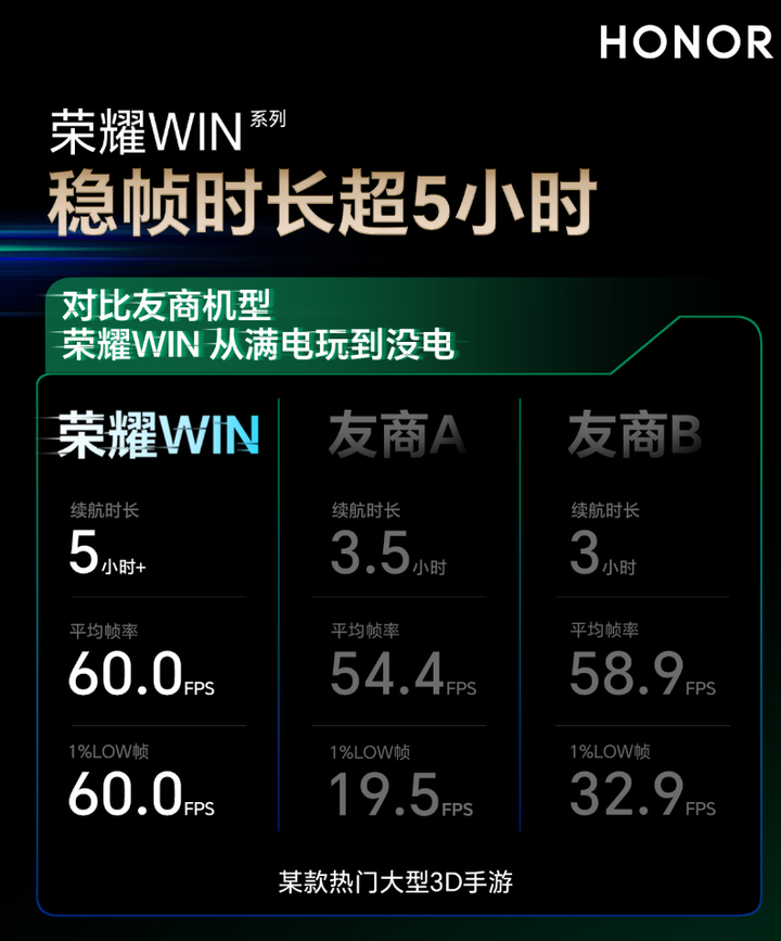 10000mAh的究极大电池,东风涡轮散热系统,185Hz刷新率的屏幕等参数。尤其是第一眼看到手机的电池做到上万的时候,我真的是有两眼一黑的感觉。 用手机历史比较深的朋友应该都知道,以前当一台手机做到5000毫安时的时候,就可以说充电宝级别的手机。因为那个时候大多数充电宝其实也就是5000毫安时。 后来普及了一万毫安时的充电宝,以及其他家手机电池都上了4000毫安时以后,大家都没怎么说过电池容量了。 现在五六千的已经是寻常,大一点的来到了七八千。但是真正意义上敢把电池容量堆上万的,还是屈指可数,量产机中,荣耀WIN系列应该是第一个。 可能会有朋友说,七八千和一万差距好像也不是很大啊,无非就是两三千的电池容量。是的,说得都没错,但这就是量变到了极限后形成的质变。就好像高考成绩580分,590分,很高了,但是600分给人的感觉就是不一样。 同样,680、690已经是学生了,但是分数上了700分,给人的感知就是不一样。 而且不要忘了,10000毫安时大电池比7000毫安时的大电池看上去就多了3000毫安时,但是在量级上,是提升了42.86%,哪怕是对比8000毫安时大电池的手机,也是提升了25%,从这个角度来看,你就知道一万毫安时到底有多夸张了。 在手机上也是如此,一万毫安时巨大电池的手机,就是会比七八千电池容量的手机给用户的震惊度更大。 可以在这里列个结论:荣耀WIN系列手机绝对是以后大家讨论智能机历史上绕不开的一个环节,原因很简单,荣耀WIN第一个将手机电池容量迈入了万级时代。就仅仅这个电池来说,足以列入史册了。因为以后不管怎么讨论大电池手机,第一个万级时代的荣耀WIN绝对是绕不开的。 不过这些都是前言,要正儿八经地讨论荣耀WIN系列,就要看它的产品定位和配置,以及所面向的用户群体是什么,接下来我们可以逐步推进,聊一聊这一代荣耀WIN系列为什么可以称得上是:年度电竞夯机。 最在意用户体验的电竞夯机 其实在聊手机的时候,我们都知道,很多时候仅仅是看参数就能够看出一个概念和逻辑。但是就像我之前说的,参数是体验的基础,却不是体验的所有。 所以我们要逐步拆解荣耀WIN系列的参数,以及在实际体验上会是一种什么体验。 10000毫安时电池,除了大更能直面更多场景 其实很多人都忽略了超大电池的特性以及与相比较7000毫安时这种电池相比下,带来更大的容错。举个例子,不少人其实应该都感知到了“充电宝刺客”,注意,我说的不是说充电宝的价格,而是说共享充电宝的使用价格。 |