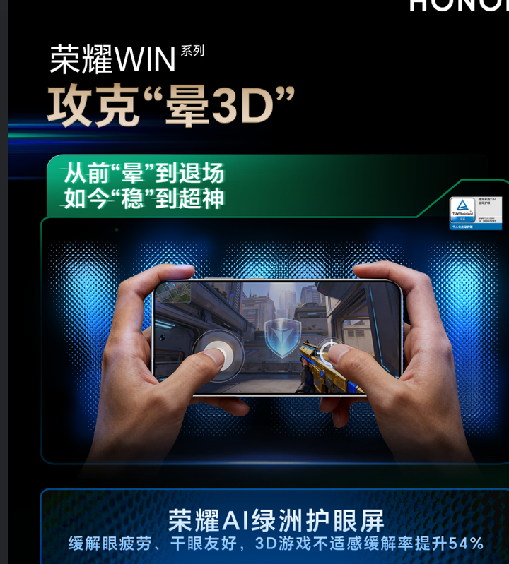 这次荣耀WIN系列的绿洲护眼屏还解决了一个什么问题呢?那就是一些开放世界手游晕3D的情况。在这方面,荣耀WIN系列得益于超高素质的屏幕,对于3D游戏的不适感缓解率提升54%,这也就意味着很多原本玩3D游戏会晕的朋友,这次也可以尝试在荣耀WIN系列上体验3D开放世界大作的优质体验了。 说实话,原本在荣耀宣布WIN系列电池上万的时候,我就猜到荣耀会加强屏幕的舒适度。但是我没想到用的是这么高标准,要知道WIN系列护眼屏的标准甚至比一些友商的旗舰手机都要高。 不过考虑到“年度电竞夯机”这么高的标准,荣耀肯定要在护眼上狠狠地提升一波,把这个标准拉的高高的。 散热助力游戏体验 却不止游戏 如果说手机玩游戏的第一个痛点是续航,想痛快再来一局时,电池的电量却报警了,第二个痛点就是眼睛干涩,疲劳,毕竟打个两三个小时很容易疲惫。 荣耀WIN系列解决这两个问题后,很快就要迎来第三个问题,也是绝大部分重度游戏爱好者的绝杀痛点:散热。 大家都知道,现在手游的画质越来越好,芯片的性能也越来越强,即使是有更好的工艺制程带来更高效的能耗比。但是问题的本质还是出在性能上:越强的性能发挥,就会带来越高的温度。 甚至不夸张地说,散热问题是游戏体验重要的一环,却又不仅限于游戏。我相信不少朋友应该都有过这种体验:哪怕是不打游戏,在炎热的夏天,户外的场景下,打开手机切换两个APP,或者刷会短视频,追会剧,手上的手机温度就已经高到无法使用了。 |