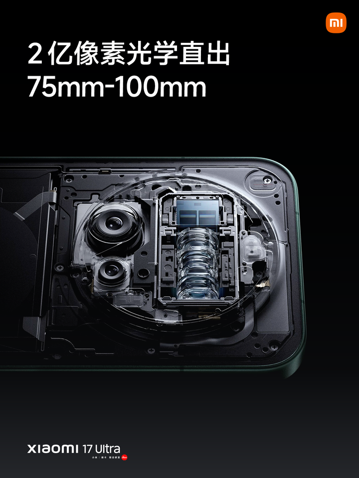 首先,最受大家瞩目的,自然是这个可以光学变焦的两亿像素大底潜望长焦。 如果你回顾小米从13Ultra到15Ultra的迭代过程,就会发现他们一直在解决焦段的问题。 小米13Ultra,第一次加入了75mm的中焦镜头,填补了主摄到潜望长焦之间的衔接缺口。 小米14Ultra,强化了中焦镜头,同时加入了长焦微距的功能。 小米15Ultra,则是继续强化潜望长焦,使用了1/1.4英寸的超大底。 按理来说,到小米17Ultra,他们应该继续强化中焦,然而,手机那点影像空间早就被这套影像系统塞到了极致,其实在小米15Ultra的时候我就发现,镜头模组已经大到一个夸张的地步了。不论如何,强化其中一个镜头,都势必会挤压另一个镜头的空间。 这种结构性矛盾,如果还用之前的四摄配置,是几乎不可能解决的。因此,小米的解决思路,很自然地来到了光学变焦之上,只要一颗镜头能自由地在中焦和长焦之间切换,那不就能实现两个焦段的双超大底了吗? |