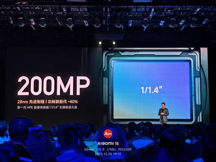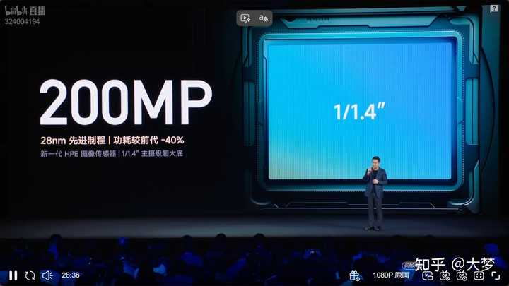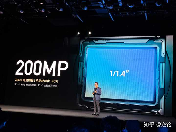 传感器使用了三星HPE,1/1.4英寸大底,200MP像素,模拟层使用了28nm先进制程,功耗较前作降低了40%。 |