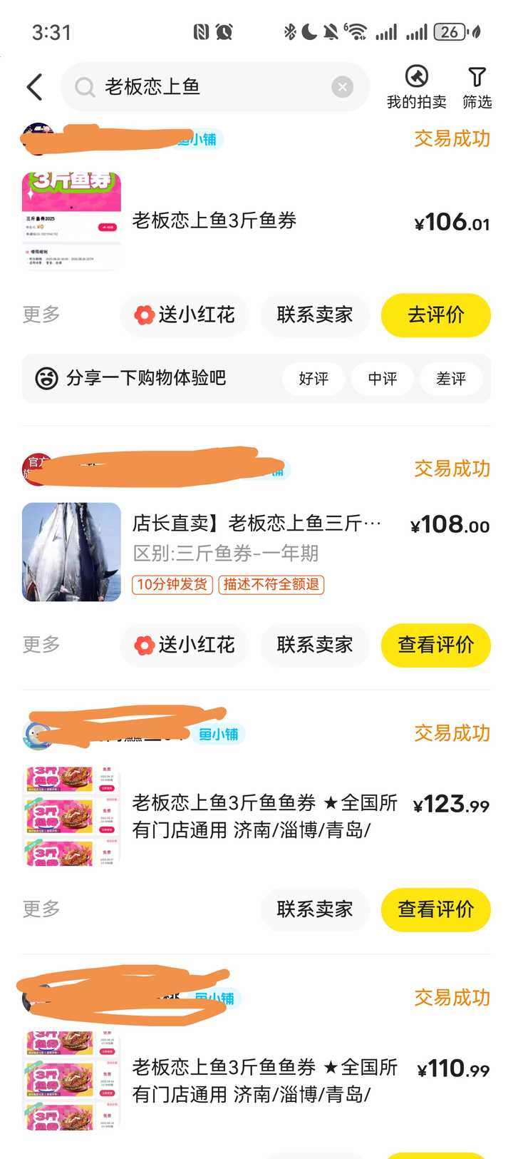 还有各大连锁饭店的优惠券,有的比外卖大战的优惠券省的都多。 (强推这个老板恋上鱼3斤鱼券,现在闲鱼上买108,去美团团购还得一百五呢。) |