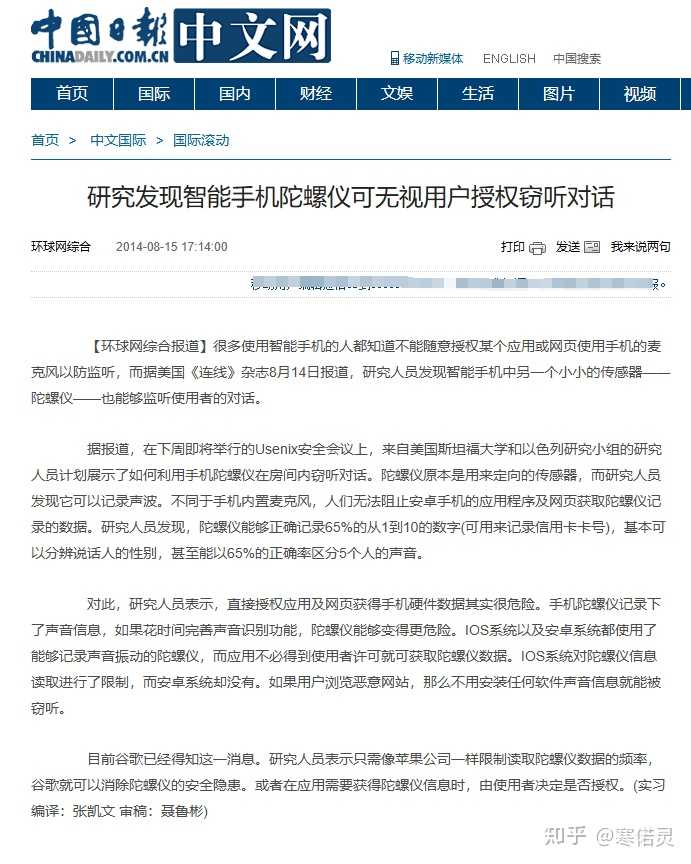 会监听,而且是用陀螺仪监听。 没想到吧?github上还有源代码,最主要的就是陀螺仪不用授权,随便都可以调用的。 PS:6.29,不好意思,侵犯了一些人的利益,大家看看,乐呵一下就行了。 手机App无授权就能监听电话 成功率高达90%smart.huanqiu.com/article/3xCQCrbhTuD 不用再担心手机被窃听了,因为你可能根本发现不了。_澎湃号·湃客_澎湃新闻-The Paperwww.thepaper.cn/newsDetail_forward_6286581 |