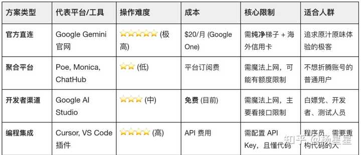 二、能力总览:推理、多模态、长上下文与“智能体” ? 原生多模态 + 超长上下文:模型卡明确写到 支持文本、图片、音频、视频、代码 等输入,上下文窗口最高 100 万 tokens,输出上限 64k tokens。 ? 更深、更稳的推理能力:官方宣称 “显著超越 2.5 Pro 于主要 AI 基准”,在科学、数学与多模态推理上有突破。 ? 智能体/工具使用(Agentic):在 终端操作(Terminal-Bench 2.0)、工具链调用(t2-bench)、长程规划(Vending-Bench 2) 等与智能体落地强相关的评测上取得明显提升。 ? Search 的生成式界面:AI Mode 以 动态图表、可交互控件/仿真 等“生成式界面”呈现知识,按查询实时生成。 三、哪里能用、怎么用、要多少钱方法一:国外使用入口与分发渠道 |