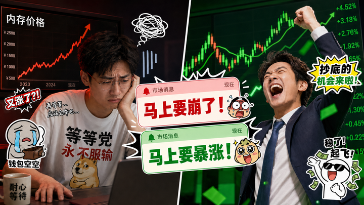 回顾过去一年,我在网上舆论看到最好笑的两件事情,正好对上了,一边是网上不停的有舆论说内存条马上就要跌,马上就要大跌了,别买,再等等,然后继续涨涨涨。另一边是说4000点开启大牛市主浪,梭哈满仓干就完了,马上就要大涨了,赶紧买,再冲冲。 |