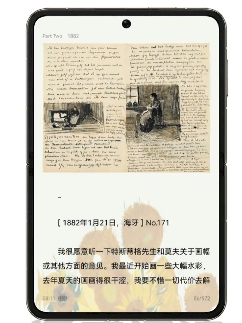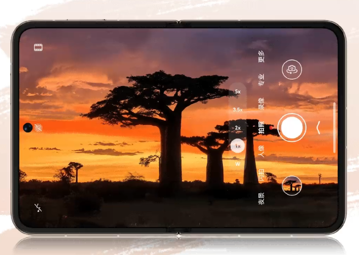 展开状态时,Pura X Max有如一个小平板,要比横折叠接近1:1的长宽比例更合理,看视频、玩游戏、看书、看文档、办公、拍照、拍视频等等,都要更爽。 |
