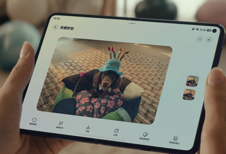 这一点其实最常用的场景是阅读政治经济科技文章的时候,如果遇到不懂的地方,可以主动提问。 同时我们经常读这方面的文章就会遇到自己实际上是半懂不懂,但是当时的水平又不足以提出有效问题的时候,这种主动启发式提问,可以大大加速理解。 我家里人最近就在读一些经济政治类的书籍,里面就会遇到很多过往几十年的历史的描述,但作者写作的时候喜欢默认读者知道这些细节,直接略过不作讲解,直接给结论。 这时候作为中年人,又不太会用搜索引擎,也怕打扰别人,就可以用小艺实时提问解读,进行深度对话。 以前上学的时候,老师喜欢说,读书最高的境界是把书读厚,其实讲的就是这种状态,一边看书,一边查阅相关的资料,把作者的言外之意,未提及的知识点,全部都一网打尽。 而我们也可以由此看到,华为Pura X Max的小艺伴随式AI,展示了基于本地多模态大模型的主动服务雏形。 这是一种非常重要的AI与人类的互动形式,因为大部分人用AI面临两个问题。 第一,不知道AI能干嘛,或者做得好的AI能力有多强,也不知道何时需要用AI。 第二是懒得用AI,不想用AI,或者想用也觉得唤醒一下太麻烦。 如果是普通的AI,则需要长按拖拽选取内容,复制,打开AI应用,粘贴到对话框,还得自己想具体的问题要问什么。 但伴随式AI就是一个流动式的,连续的,动态的体验。 我们看最近爆火的龙虾claw其实就是这个思维,人类提出需求,人类自己可能不知道怎么解决,但AI因为现在已经非常聪明,它可以自己去思考规划如何解决问题,主动去服务人类的创意,而不仅仅是被动地服从指令。 最近一年几乎所有的AI智力都已经跃过了那道坎,每个人只要你有创意,AI就可以自主思考,并且为你输出很好质量的内容。 华为Pura X Max这次搭载的手写笔加持下,AI灵感妙创功能就是图像大模型进步的结果。用大阔,出妙作。 给心爱的狗子画一个帽子。 |