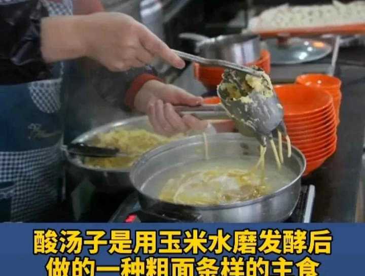 又是酸汤子…… 酸汤子其实算是我们老家那边的一种小众传统食物吧,说是来源于当地的满族。其实就是一种就是用发酵的玉米面做的面食。做法很简单:把玉米泡水磨碎,泡个一周左右自然发酵,再搓成粗面条下锅。辽宁、黑龙江一带都能见到。它的味道挺特别的,有人爱吃,有人觉得酸了吧唧的不好吃,我就是后者,反正我不喜欢吃这个。 |