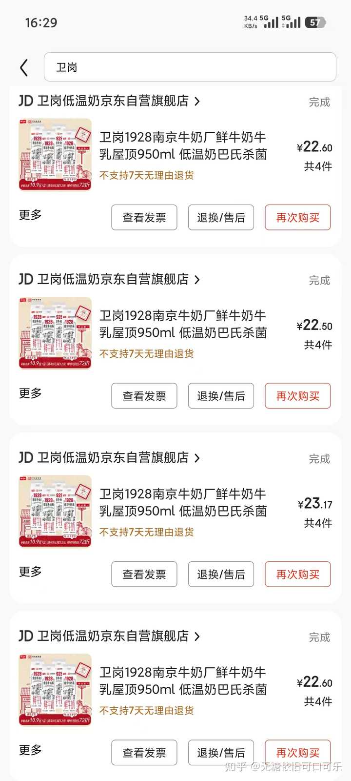③鲜奶,京东自营上卫岗5.9元/950ML不到、山姆17.9元/2L 卫岗的950ml鲜奶盒马一般卖7.9-11.9元,京东上需要每周抢一次0.88元购买的30-5券,然后再买4瓶,每周可以买一次,一次买4瓶最划算 山姆就是17.9元/2L装那个牛奶了,一般普通超市的鲜牛奶要20元左右/1.5L,山姆这个牛奶蛮划算的 山姆会员可以买其他人的副卡100元左右/年,然后绑定京东山姆或者山姆app,线上下单。 我一般喝常温奶比较多,因为价格便宜,有时买点鲜奶改善一下口味 |