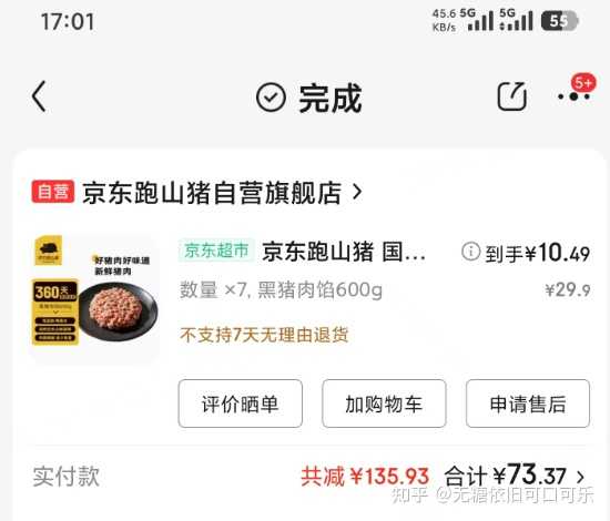 ⑤冷冻猪肉,比超市的冷鲜肉要便宜些 但是冷冻猪肉的质量参差不齐,感觉只能买里脊肉 纯痩 哪怕京东自营,肉馅里感觉含水量太多、肋排里掺脊骨、五花肉肥的太多…… 猪肉还是线下买新鲜肉比较好,线上买极力不推荐 |