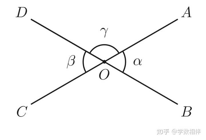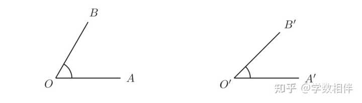 任意角的度量以 O 为圆心绘制一个圆 \Gamma , 该圆交 OA, OB 于对应的点 A^\prime, B^\prime 。计算弧 \overset{\LARGE{\frown}}{A^\prime B^\prime} 占圆 \Gamma 总长的比值。那么 \angle AOB 的度量 \widehat{AOB} 就等于 360^\circ 的那个比值倍。 例如,假如说弧 \overset{\LARGE{\frown}}{A^\prime B^\prime} 占圆 \Gamma 总长的比值为 1/6 , 那么,那么 \angle AOB 的度量 \begin{aligned}\widehat{AOB} = \frac{1}{6}\cdot 360^\circ = 60^\circ\end{aligned}\\ 注解1.6: 如果两个角的度量相等,那么这两个角相等。为了避免混淆的风险,我们对角度和它的度量用不同的记号: \angle AOB 表示射线 OA, OB 两个边所夹的角,而 \widehat{AOB} 总是表示角 \angle AOB 对应的度量(单位为度)。在具体上下文中,我们会用小写希腊字母表示角的度量。例如 \widehat{AOB} =\theta 表示 \angle AOB 的度量为 \theta 。4. 角的分类 半圆: 每个直径 AB 将圆平分为两个相同的部分,此时 \angle AOB 对应的度量为 180^\circ 。 通常来说,我们很少遇到角度数大于 180^\circ 的,除非明确说明,一般假设角度数都是说的是凸角 \angle AOB ,其度量为 0^\circ < \widehat{AOB} \leq 180^\circ 。 锐角(acute angle): \widehat{AOB} = 90^\circ 。 钝角(obtuse angle): \alpha, \beta 的度量之和为 90^\circ , 称这两个角互补 \alpha + \beta = 90^\circ 。 互余角 为complementary angles,互补角可以说supplementary angles。 对顶角(opposite angle, OPP), 如果两个角 \angle AOB, \angle COD 的两条边刚好是对应相反的两条射线,那么这两个角称为对顶角。 |