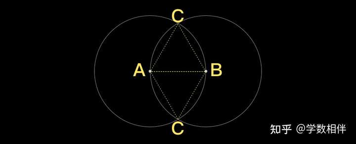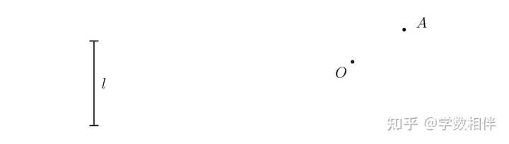 平面内任意选定一个点 A 。使用圆规以 A 为圆心, l 为半径绘制一个圆。在圆上任意选定一个点作为 B 。然后使用圆规再次以 B 为圆心, l 为半径绘制另一个圆。然后两个圆之间有两个交点,随便选哪一个作为 C 点均可,这个时候得到所要的等腰三角形 ABC 。 |