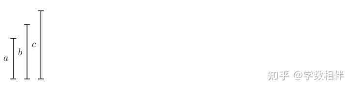 绘制一条直线 r , 并在上面取两点 B,C: \overline{BC}=a 。绘制射线 \overrightarrow{BX}: \widehat{CBX} = \beta 。在直线 r 划分的两个半平面,包含点 X 的一面绘制一条射线 \overrightarrow{CY}: \widehat{BCY} = \gamma 。标记两条射线 \overrightarrow{BX}, \overrightarrow{CY} 的交点为 A 。 则三角形 ABC 即为所求。 同样,我们可以重复上面的步骤绘制多个这样的三角形,让它们位置和方向不同,这些三角形是全等的。于是就激发我们得到第二个三角形全等的情形,称为 ASA 情形。 2.4 边边边绘制三角形 例2.6: 已知三角形 ABC 的三条边长 \overline{AB} = c, \overline{AC} = b, \overline{BC} = a , 用尺规作图绘制另一个三角形三边与它们对应相等。 |