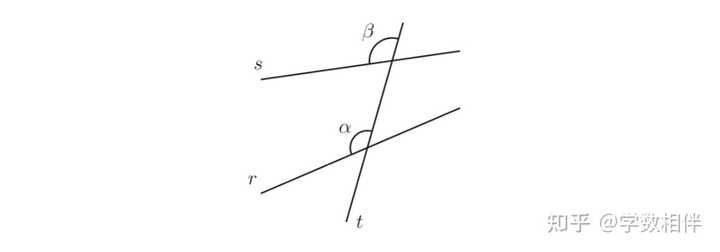 6) 如下图所示,同位角(corresponding angles): r\parallel s\iff \alpha = \beta 。 |