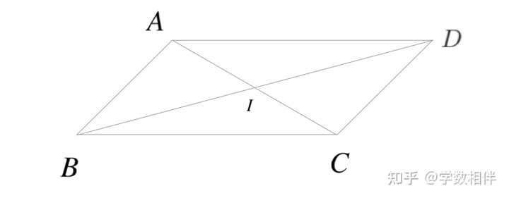 证明: 设 \overline{AB} \overset{\parallel}{=} \overline{CD} , 设 I \in AC\bigcap BD ,则 \Delta ABI\cong \Delta CDI 。很容易证明结论成立。 2) 证明三角形中线将三角形分成四个全等的三角形。 |