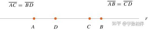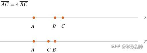 两种情形,如图所示。因为 C 在线段 AB 上,因此对应下面情形, \overline{AC} = 8 。 3) 设 A,B,C,D 是直线 r 上的四个不同的点,其中 D\in \stackrel{\rightarrow}{AC}, B\in \stackrel{\rightarrow}{DC}, \overline{AC} = \overline{BD} , 证明 \overline{AB} = \overline{CD} 。 |