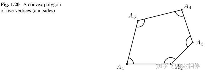 凸多边形(convex polygon), 设 n\geq 3 为自然数, A_1, A_2,\cdots, A_n 为平面内的 n 个不同的点,如果对于 1\leq i \leq n 下面两个条件满足(取 A_{n+1} = A_1 ): a) \overleftrightarrow{A_iA_{i+1}} 不包含任意其他的点 A_j 。 b) \overleftrightarrow{A_iA_{i+1}} 将其他点 A_j 都隔离在它自己确定的同一个半平面内。 那么就称 A_1A_2\cdots A_n 为凸多边形。 顶点(vertices): 点 A_1, A_2,\cdots, A_n 称为多边形的顶点。 边(sides): 线段 A_1A_2, A_2A_3, \cdots, A_nA_1 称为多边形的边。 周长(perimeter): 凸多边形所有边的和称为它的周长。 多边形区域(polygonal region): 对应于多边形 A_1A_2\cdots A_n 的多边形区域是平面的有界区域,其边界为多边形边的并集。 |