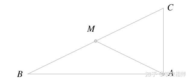 证明思路如上图所示,三种方式。 12) \Delta ABC: \overline{BM} = \overline{MC}=\overline{AM} , 求证 \widehat{BAC} = 90^\circ 。 |