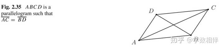 证明: 反证法,假设 P 到 \overleftrightarrow{A_1A_2} 的垂足落在线段 A_1A_2 之外,那么就有 \widehat{PA_1A_2} \geq 90^\circ\lor \widehat{PA_2A_1} \geq 90^\circ 。 不失一般性,不妨设 \widehat{PA_2A_1} \geq 90^\circ , 因为其余的垂足也都落在了多边形边线段之外,那么自然就能得到 \widehat{PA_2A_2} \geq 90^\circ,\cdots, \widehat{PA_nA_{n-1}} \geq 90^\circ, \widehat{PA_1A_n} \geq 90^\circ\\ 于是我们就得到 \overline{PA_2} > \cdots> \overline{PA_n} > \overline{PA_1}\\">\overline{PA_1} > \overline{PA_2} > \cdots> \overline{PA_n} > \overline{PA_1}\\ 显然不可能,所以假设不成立,结论成立。 8. 练习2.5 1) 如果两条线段相等且平行,证明它们的端点刚好是某个平行四边形的顶点。 |