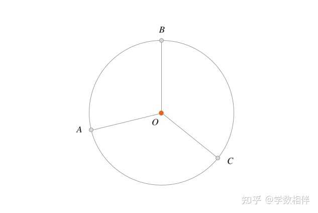 10) 圆 \odot O 上取三个点 A,B,C , 使得 \overset{\LARGE{\frown}}{AB} = \overset{\LARGE{\frown}}{BC} = \overset{\LARGE{\frown}}{AC} , 计算 \angle AOB, \angle BOC, \angle AOC 的度数。 |
