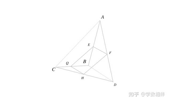 对三角形 \Delta PAC, \Delta PBD 应用三角形不等式即可求证。 8) 设 3\leq n\in\mathbb{Z} , 证明所有凸 n 边形,任意一边长度都小于剩下 n-1 条边长度之和。 数学归纳法即可得证。三角形成立,然后假设 n=k 成立,证明 n=k+1 也成立。 9) 设 m,n\geq 3 , \mathcal{P}, \mathcal{Q} 分别为凸 n,m 边形。若 \mathcal{P} 包含在 \mathcal{Q} 的内部,证明 \mathcal{P} 周长小于 \mathcal{Q} 周长。 |