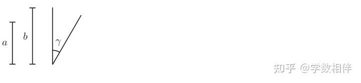 平面内选择一个点 C , 绘制一条射线 \overrightarrow{CX} 。绘制一个角 \widehat{XCY} = \gamma ,这样就确定了另一条射线 \overrightarrow{CY} 。分别在两条射线 \overrightarrow{CX}, \overrightarrow{CY} 上取两个点 B,A: \overline{AC} = b, \overline{BC} = a 。 得到的三角形 ABC 即为所求。 |