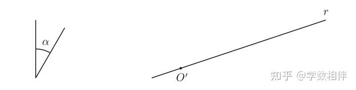用圆规测出所给线段 l 长度,固定夹角。然后选择一个圆心O,以 l 长度确定一个点 A ,使得 \overline{OA} 等于所给半径长度。然后让圆规另一角旋转360度,得到所要绘制的圆。1.4 绘制给定大小的角 三角形全等的 SSS 命题会证明这里的步骤是合理的。 例1.7: 尺规作图绘制给定大小的角 绘制一个角,顶点为 O^\prime , 其中一条边在 r 上,且其度量为 \alpha : |