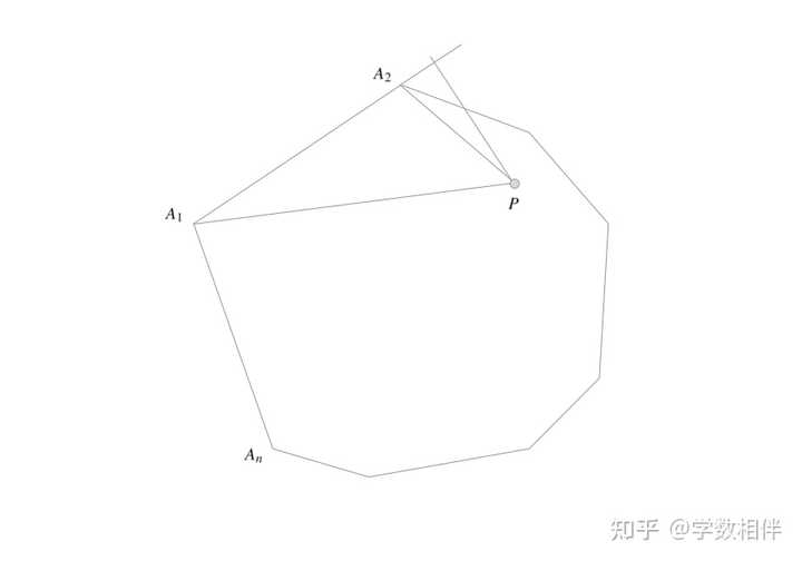 14) 凸多边形 A_1A_2\cdots A_n ,点 P 位于其内部。证明存在 1\leq i\leq n 使得 P 到边 A_iA_{i+1} 的垂足位于线段 A_iA_{i+1} 内( A_{n+1} = A_1 )。 |