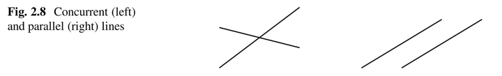 15. 等腰三角形底角相等 命题2.13: 等腰三角形底角相等。 我们自行验证一下,只需要取底边的中线,利用 SSS 即可证得。 推论2.14: 等边三角形的三个内角相等。 这个直接由上面命题可推得,可以自行尝试一下,虽然简单,但是蛮有意思,也能锻炼对于理论的掌握。 2.3 平行(parallel)16. 共点和平行 共点(concurrent): 平面内两条直线,如果有共同点,则称它们共点(concurrent)。 平行(parallel): 平面内两条直线没有共同点,则称它们平行(parallel)。 |