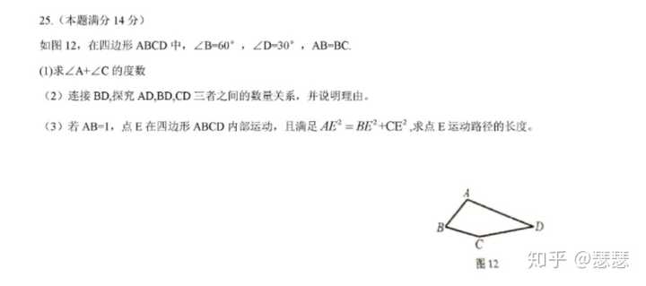 你只能通过题目信息获取的提示:AE2=BE2+CE2→用构造直角三角形,存在多处相等边→可能会用上旋转,D是动点→构造与已知定值动态关系/抓住其不随动点改变的部分构建关系。这题的考场思路在评论区里 用最常规的初中思路去解题 你要是想学得好,最好的方法是报当地的大教培的培优班,教培其实非常熟悉当地中考出题方向,我有幸看过一些教培的授课教案,其实和广州中考的压轴题真的非常契合,我也清楚普通学生靠自己能力真的很难做出25题。 对于我来说,最怕评讲的题目就是:虽然自己做知道怎么做,参考答案看得懂,但之前模型上面没有总结,又没办法降维打击的题目,比如涉及余弦定理,涉及各种奇怪的等式求最值(带根号涉及指数函数,对的就是下面的18年24题),我答疑时候能编出一个自圆其说的“为什么要这样做”,但自己心里清楚学生后面自己遇到题目还是不会做。 |