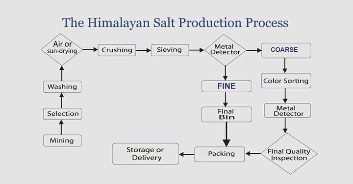 但是这种方式不管是能耗还是制造要求都比较麻烦, 目前并未投入量产,所以四舍五入还是没有。 那老外到底是怎么把玫瑰盐整到食用盐标准的呢? 这里参考了下Ittefaq Salt (巴基斯坦马拉雅岩盐制造商)[4]等多家玫瑰盐厂家的制造流程。 |