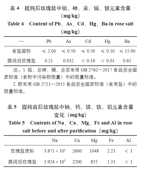 按照《火法熔融提纯喜马拉雅玫瑰盐的研究》[1]给出的数据, 火法提纯后的玫瑰盐中不溶物含量可以降低到0.0024%, 可以达到国标GB/T 5461—2016中优级精制盐指标要求, 且保留粉色外观和其他元素,效果还是不错的。 |