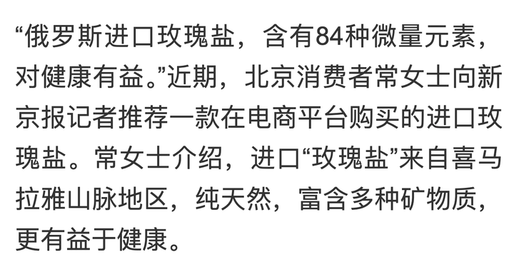 产地300多一吨,到商家手里卖到130000元一吨,身价暴涨400倍。 看懂玫瑰盐,其实就看懂了高价网红单品的包装套路。 我直接扒出玫瑰盐所有成分,撕破“产自喜马拉雅”“健康”的神秘面纱。 叫什么玫瑰盐,人家有个更高端的商品名,喜马拉雅粉盐。 其实商家如果再机灵点,完全可以叫二叠纪古盐,每一口都是2.5亿年前的滋味,这个后面再解释。 对不起,刚刚去看了一下电商平台,真有店家这么说: |